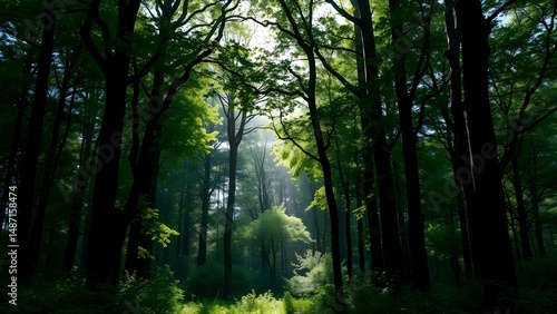 Obraz premium Sunlight Streaming Through a Natural Forest in a Peaceful Outdoor Landscape