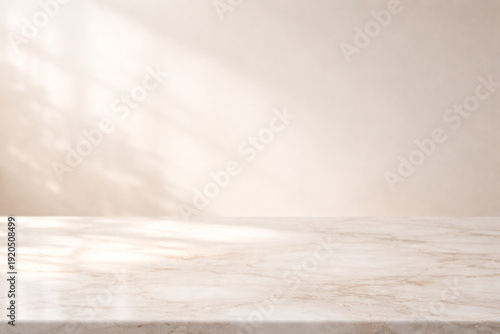 © ada, Fototapeta premium Sunlight streaming through clouds onto a marble surface in a serene environment viewed from the side