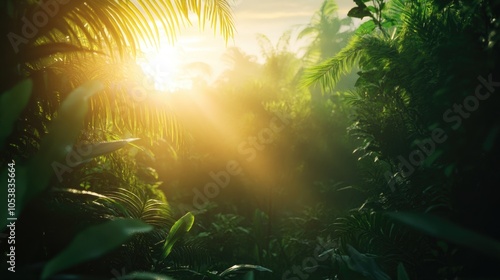 Obraz premium Sunlight Streaming Through Dense Tropical Foliage