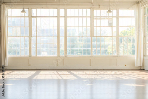 Obraz premium Sunlight Streaming Through Large Windows in Empty Room