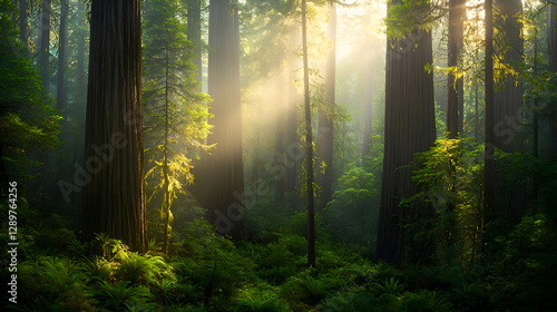 Obraz premium Sunlight Streaming Through Redwood Forest