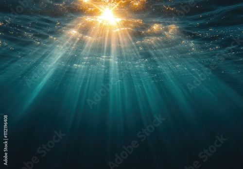 Fototapeta premium Sunlight Streaming Through Water Surface with Rays and Reflections Creating a...