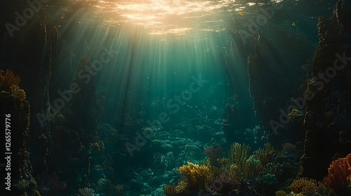 © Ishaq, Fototapeta premium Sunlight streams into an underwater scene