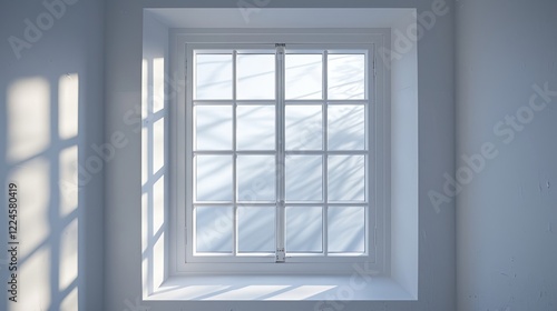 Fototapeta premium Sunlight Streams Through a Classic White Window, Illuminating the Room with a...