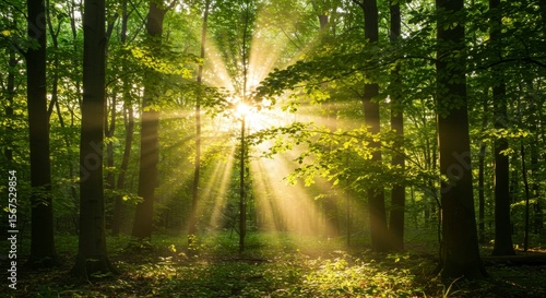 © Cortex, Fototapeta premium Sunlight streams through a dense forest