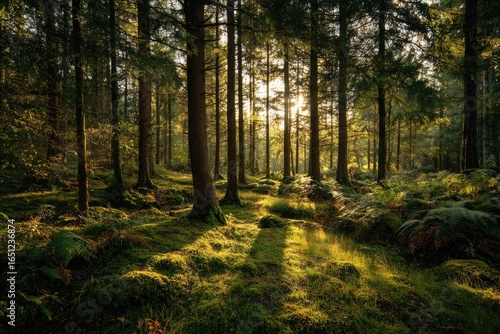 © Rijal, Obraz premium Sunlight streams through a dense forest
