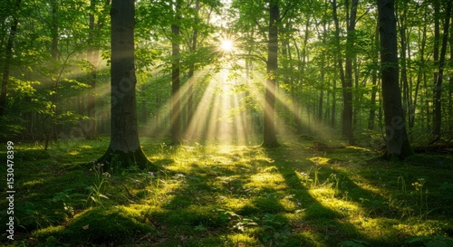 © talkative.studio, Fototapeta premium Sunlight streams through a lush forest