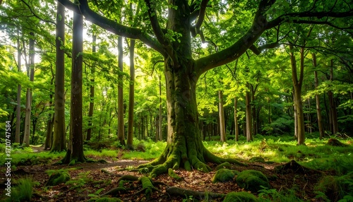 © browse, Obraz premium Sunlight streams through a lush forest (2)