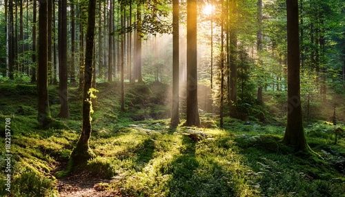 © Stella, Obraz premium sunlight streams through a lush forest 3