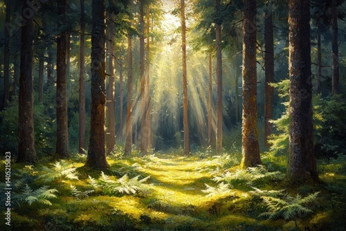 © Mega, Obraz premium Sunlight streams through a tranquil forest path (1)