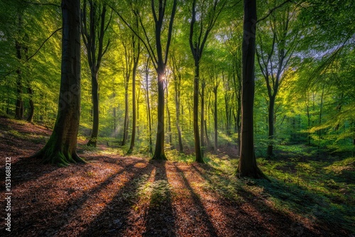 © Zahida, Fototapeta premium Sunlight streams through a vibrant forest