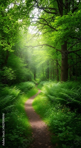 © Ageng, Obraz premium Sunlight streams through a winding forest path.