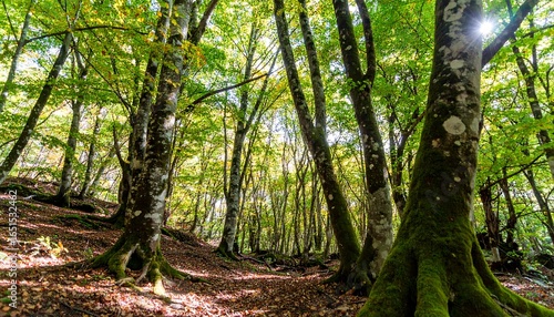 © Gareng, Obraz premium Sunlight streams through autumn forest (1)