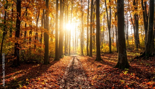 Obraz premium Sunlight streams through autumn trees