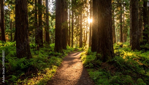 Obraz premium Sunlight streams through forest path