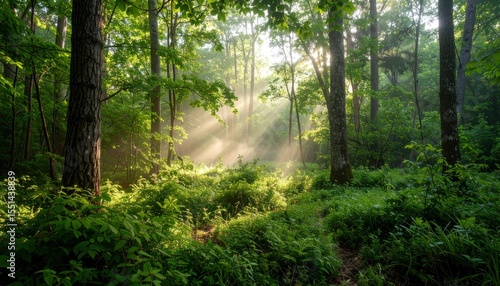 © Adi, Obraz premium Sunlight Streams Through Lush Forest