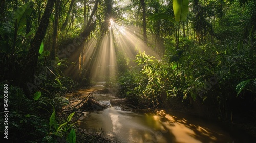 © Nandar, Fototapeta premium Sunlight streams through rainforest