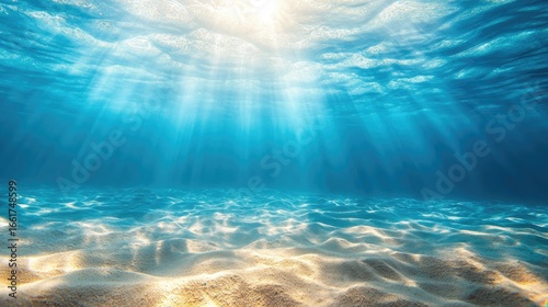 Fototapeta premium Sunlight streams through water to sandy ocean floor