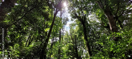 Fototapeta premium Sunlight through a broadleaf woodland