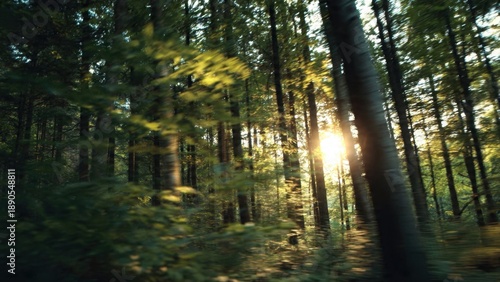 © darshika, Obraz premium Sunlight through a Vivid Green Forest