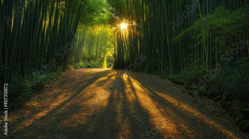 © Iis_Suryani, Obraz premium Sunlight Through Bamboo Forest