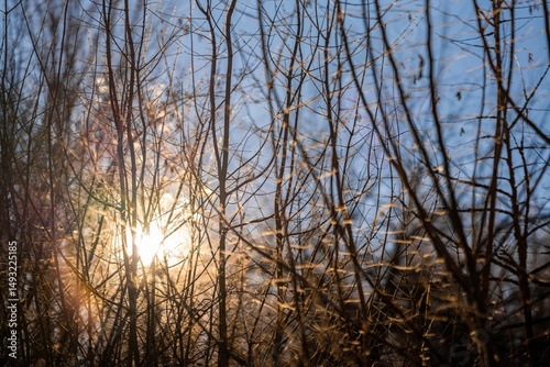 © Wirestock, Fototapeta premium Sunlight through branches against blue sky