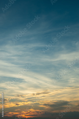 © sutichak, Obraz premium sunlight through cloud on dramatic sunset sky