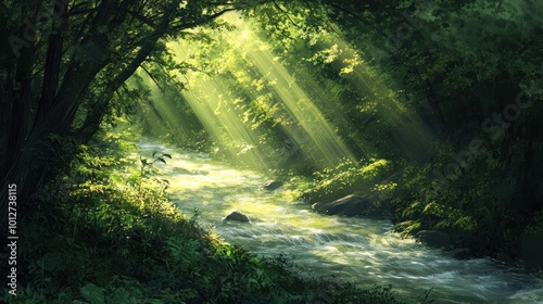 © akhmad, Obraz premium Sunlight through Forest Canopy