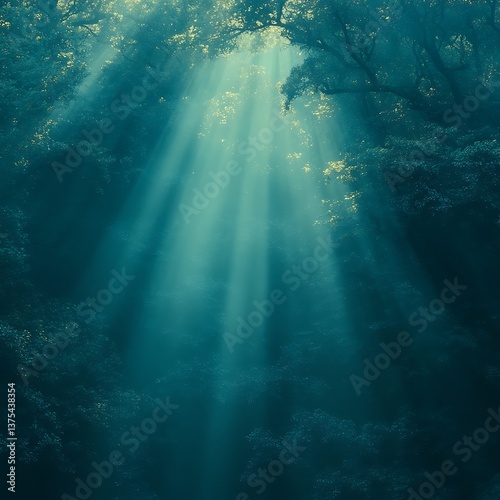 © Athayya, Obraz premium Sunlight Through Forest Canopy (1)