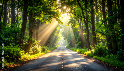 Obraz premium Sunlight Through Forest Road