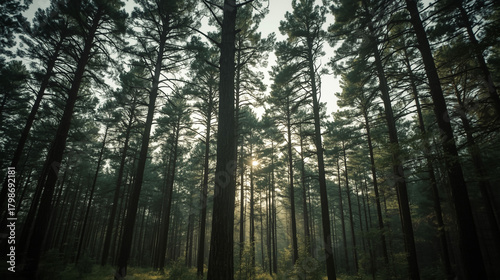 © Soni, Obraz premium Sunlight Through Forest Trees