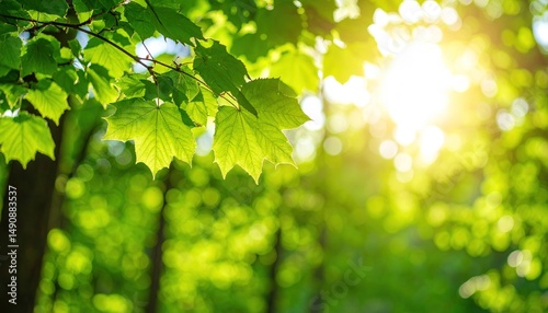 Obraz premium Sunlight Through Fresh Green Leaves.