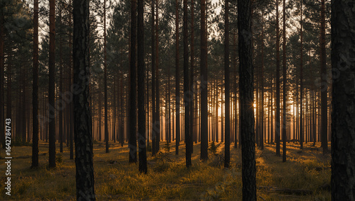 © luminareart , Obraz premium Sunlight Through Pine Forest