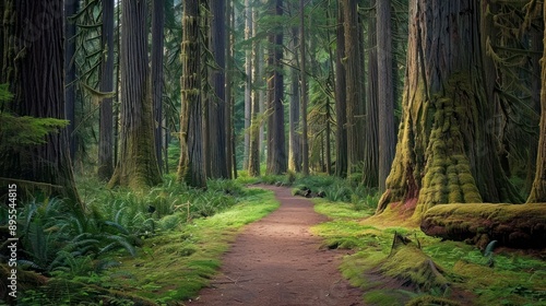 © BerkahStock, Naklejka premium Sunlight Through Tall Trees in a Lush Forest