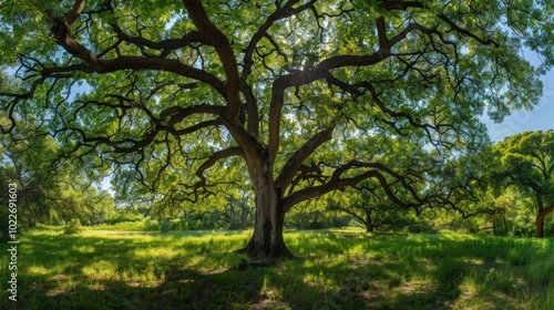 Obraz premium Sunlight Through the Canopy of a Large Oak Tree