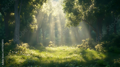 Obraz premium Sunlight Through the Forest 3D Illustration