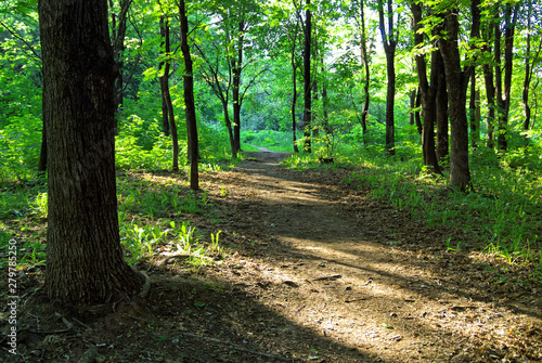 © moskvich1977, Naklejka premium sunlight through the trees in the evening in summer , Russia.