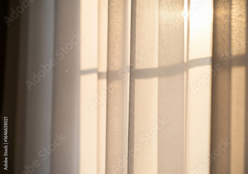 Fototapeta premium Sunlight Through White Curtains Warmth and Texture in Home Interior