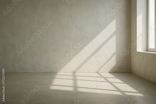 © Acrdesign, Obraz premium Sunlight through window in minimalist empty room