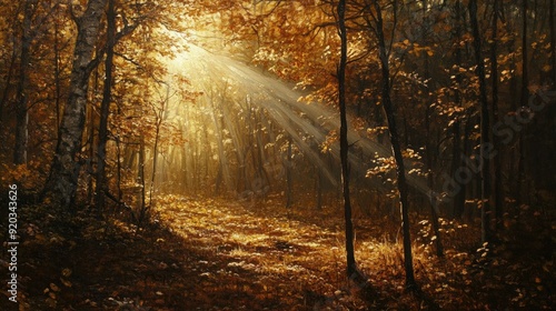 Fototapeta premium Sunlight, trees, forest. Generative AI