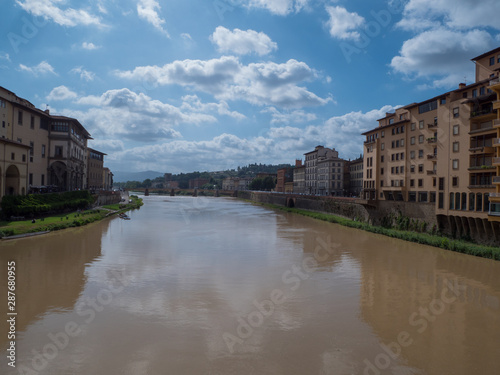 Fototapeta premium Sunlight view of Florence, Ponte Vecchio, Palazzo Vecchio and Florence Duomo,...