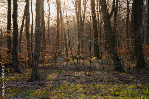 © Vasya, Fototapeta premium Sunlights, sun rays in the beautiful spring forest