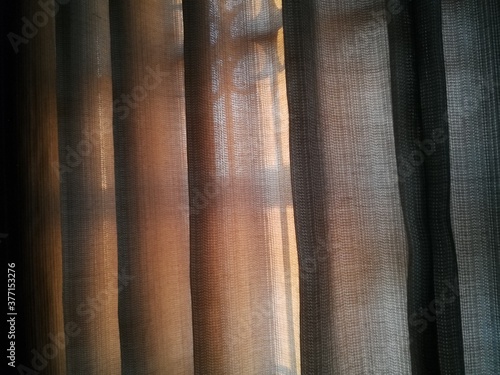 Fototapeta premium Sunlights through transparent curtains in bedroom