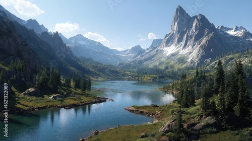 © Muhammad, Fototapeta premium Sunlit Alpine Lake Surrounded by Rugged Peaks