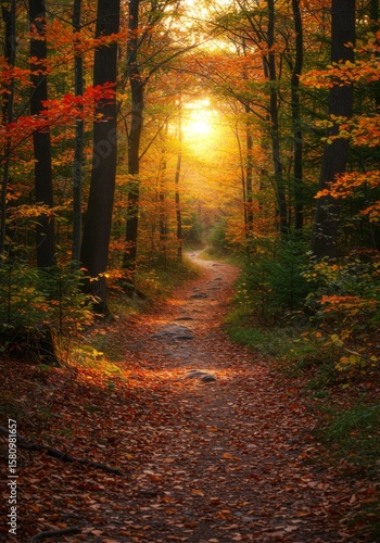 Fototapeta premium Sunlit Autumn Forest Path