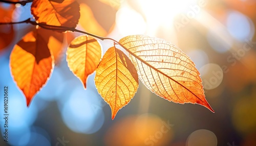 © goodskin, Obraz premium Sunlit autumn leaf details