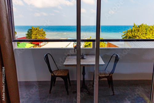 © Levon, Fototapeta premium Sunlit balcony overlooks turquoise sea