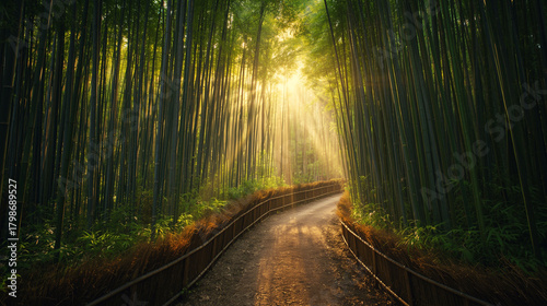 Obraz premium Sunlit Bamboo Forest Path