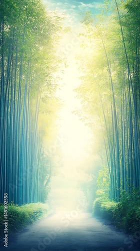 Naklejka premium Sunlit Bamboo Path