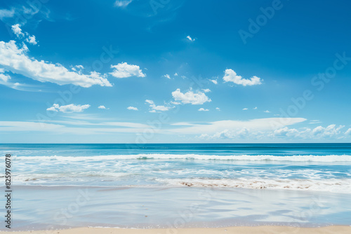 © song, Obraz premium Sunlit Beach with Blue Sky and Ocean View